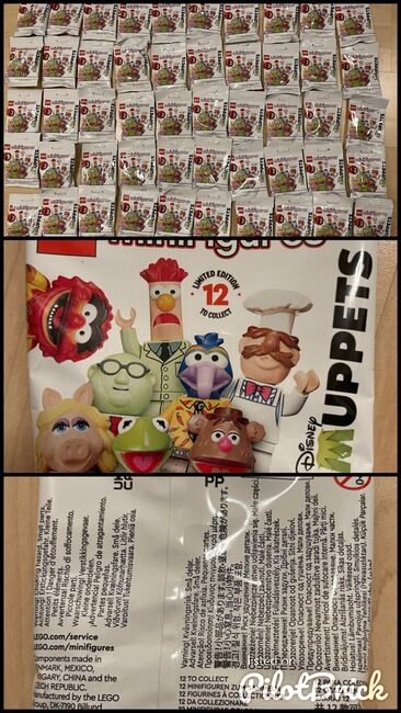 50 LEGO 71033 The Muppets minifigures - Delight a child or Muppets fan with this iconic LEGO minifigure set from The Muppets (71033). The Muppets Show collectible figures will delight fans of all ages! This unique LEGO collection features a wide range of exclusive Disney's The Muppets, including Kermit the Frog, Miss Piggy, Animal, Beaker, Prof. Dr. Honeydew Bunsenbrenner, Fozzie Bear, Gonzo, Janice, Rowlf the Dog, Statler, the Danish Chef and Waldorf. Kids and adult fans can collect and display this special LEGO Limited Edition of imaginative characters or create unexpected new stories through individual or group play. Each highly detailed LEGO minifigure comes in a sealed LEGO surprise bag with one or more accessories and a collector's booklet, and makes a great Muppet gift that will bring a smile to anyone's face. 1 surprise bag contains 1 of 12 collectible minifigures. All are still in their original packaging. Available individually for Fr. 3.50 plus shipping. 50 bags for Fr. 179.00