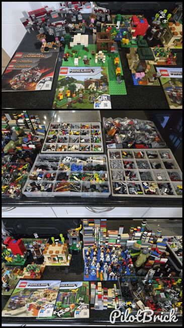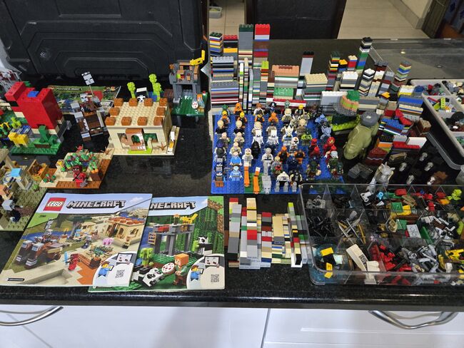 6 lego sets with mix figures and sorted lego pieces