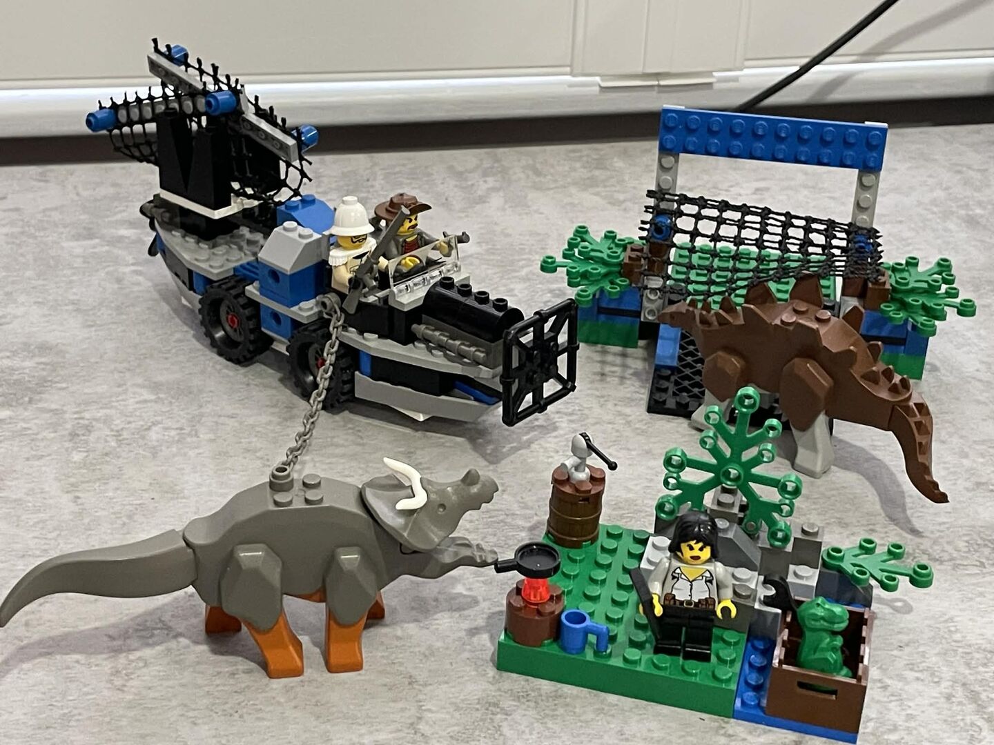 Complete set, with instructions, and minifigures. No box. Good condition, but wear commensurate with age.