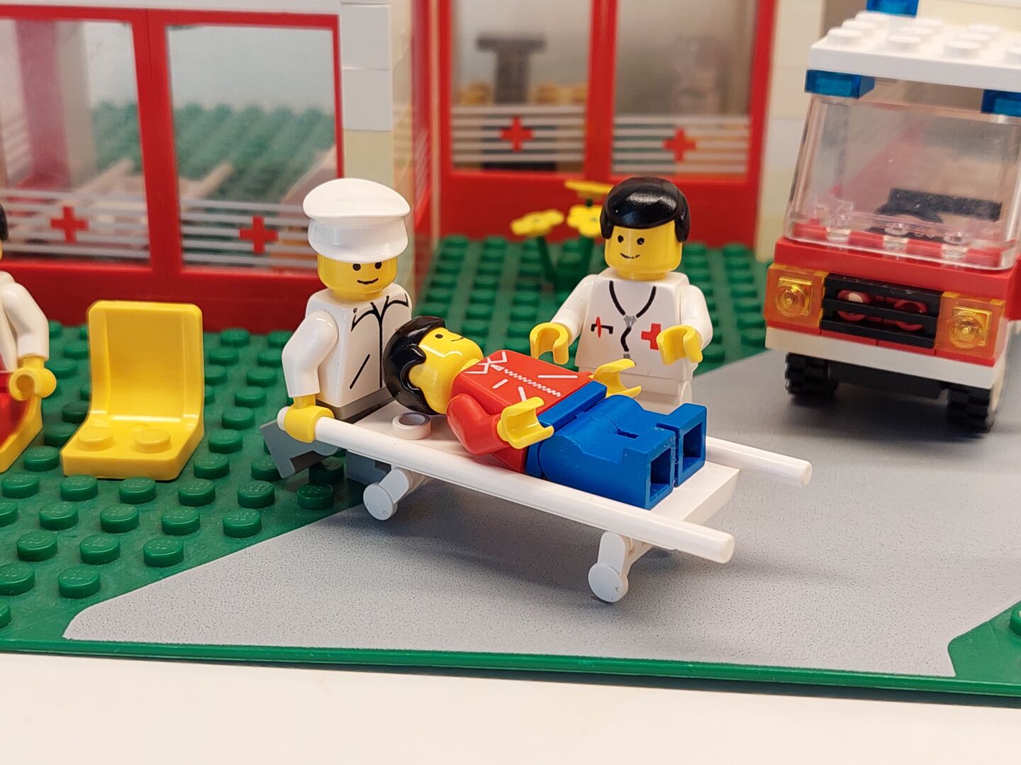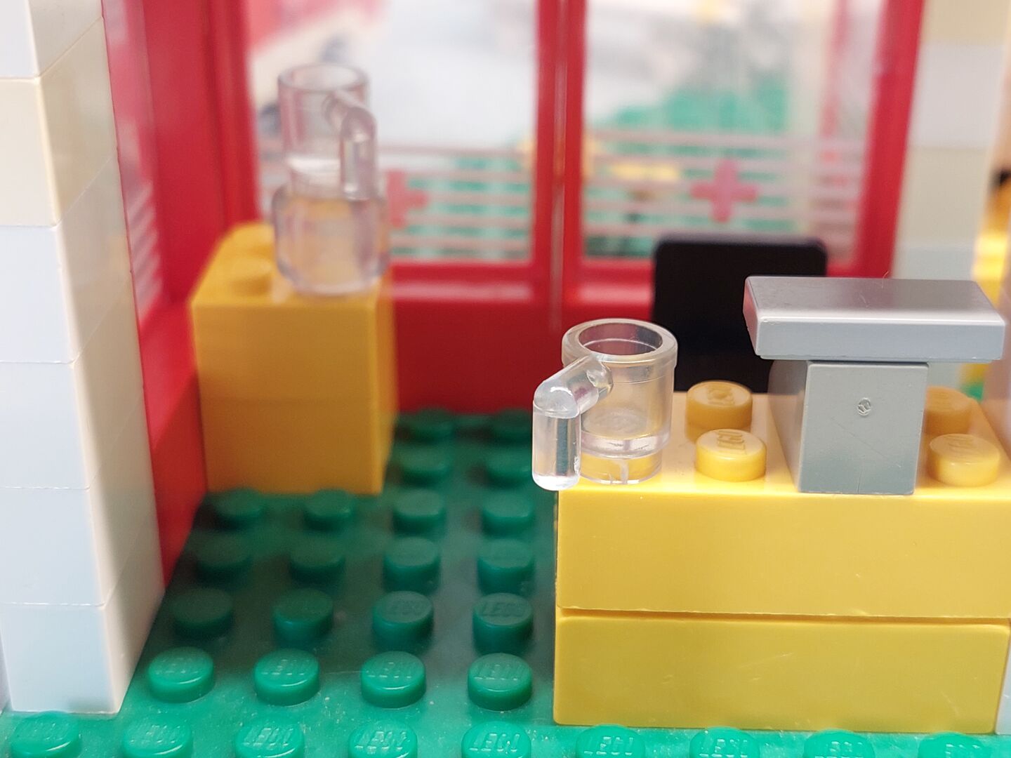 Hospital / Emergency Treatment Center (St. Mary's Hospital) - A few parts are missing or have been replaced (see photos). Original instructions. No cardboard box. A few white stones and a white plate are yellowed.