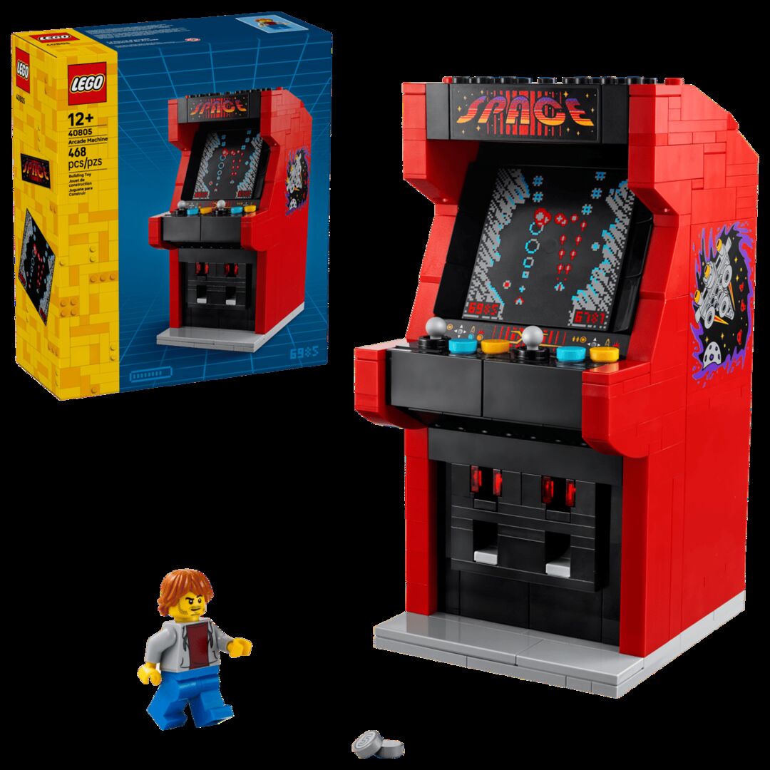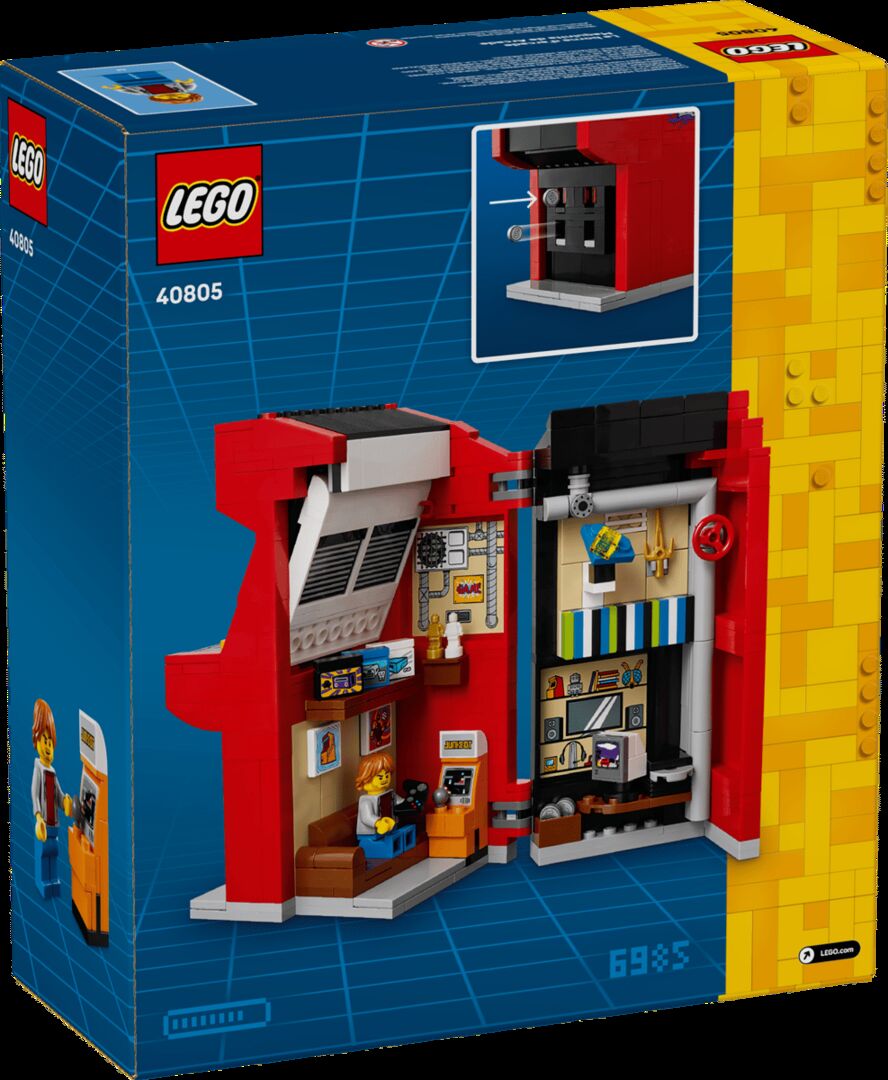 LEGO Arcade Machine 40805 Sealed New (Retro Gaming Build) Let video game fans create cool game room decor with the LEGO® Arcade Machine (40805). A fun retro gaming gift for kids aged 10 plus and adult fans, this playful display model opens to reveal a gamers room with a buildable mini arcade game station, computer, sofa and a LEGO minifigure with a remote-control element. Put the included coin elements into the slot of the arcade machine, which swooshes them out again. This video game merch is sure to inspire nostalgia for any gamer. Game room decor for kids and adults Spark memories of playing classic arcade games and create playful video game decor with this detailed LEGO® Arcade Machine building set for ages 10 and up Video game collectible The buildable arcade game station opens to reveal a detailed gamers room inside, including a buildable mini arcade game station, computer and sofa, plus a LEGO® minifigure Build-your-own gaming decor This set offers a rewarding building experience for gamers young and old, and their brick-built creation will make fun shelf or desk decor Playful display model The set includes coin elements to put into the slot of the arcade machine, which swooshes them out again Retro gaming gift for kids and adult fans Give this 468-piece LEGO® building kit to kids aged 10 plus and adult video game fans Dimensions This buildable LEGO® arcade machine model measures over 6 in. (16 cm) high, 4 in. (11 cm) wide and 3 in. (8 cm) deep