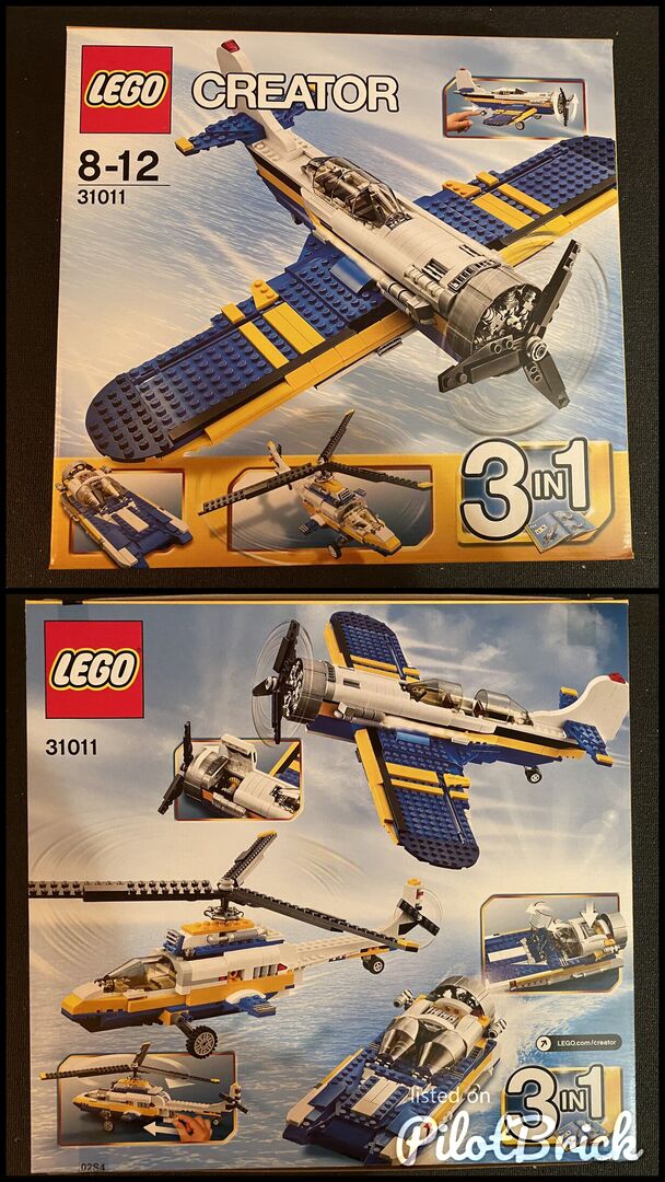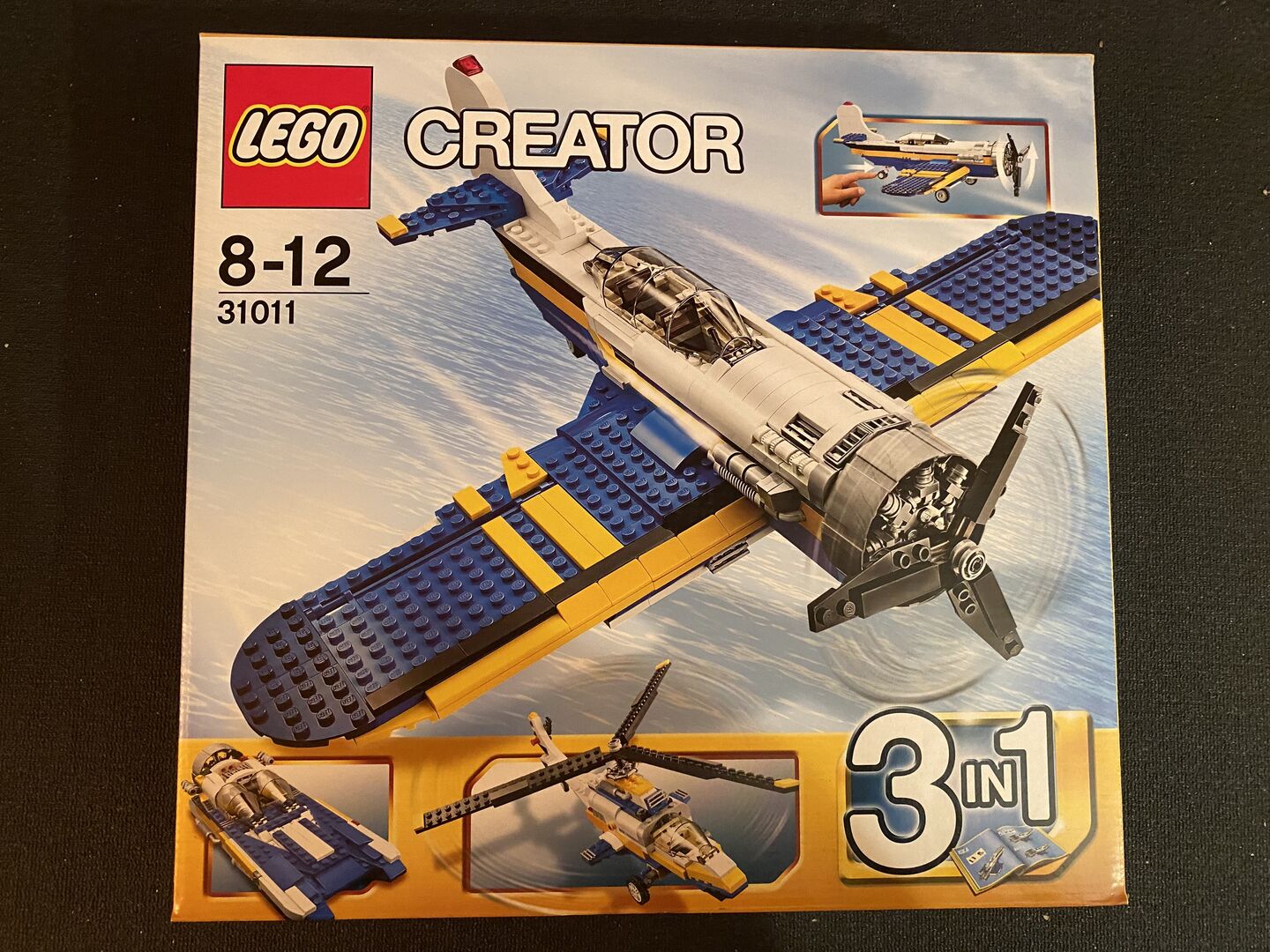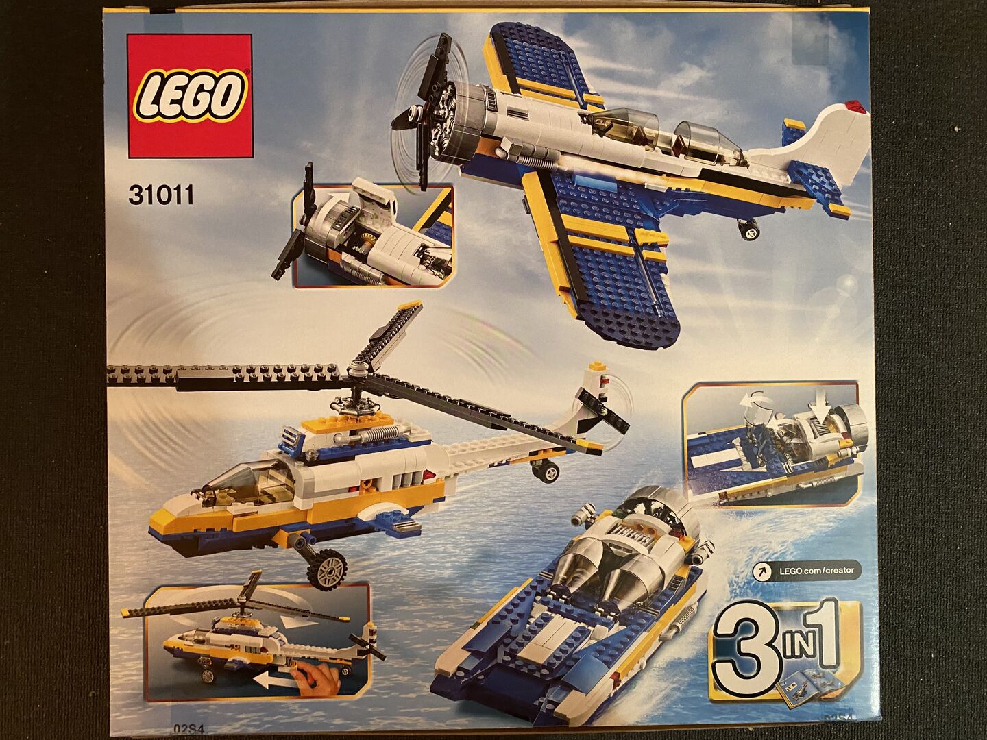 Lego Creator 3in1 Propeller Machine (year 2013) - Fast-paced adventures are guaranteed with the 3-in-1 LEGO Creator Propeller Machine. The propeller machine is over 12 cm high, 34 cm long and 40 cm wide. Helicopter has rotor crank and sail adjustment function, rotating tail rotor, detailed engine, opening tail, cockpit with detailed control console and space for 1 minifigure Building instructions included for two alternative models, speedboat and helicopter 8-12 years Scope of delivery LEGO Creator 31011 - Propeller Machine New and original packaging Seal intact no guarantee no return shipping after receipt of payment