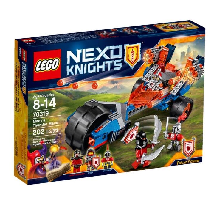 LEGO 70319 Macy's Thunder Mace was a 202 piece Nexo Knights set released in 2016. It includes Macy, a Macybot, and a Crust Smasher. The box has been lost to time but all parts are here. stickers have already been stuck. I'm willing to negotiate price.